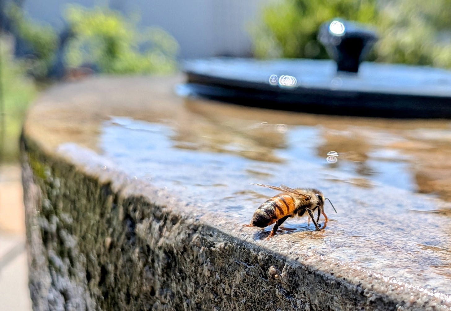 I was out with the hose watering the flowers (which you’d think would please the tiny wee creature), but she completely lost her nut. She was buzzing into my hair, and dive bombing my neck. She didn’t want to sting me, obviously, because that would mean certain death for her, but she was very much threatening it.