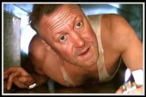 Mr. Tweddle, fixer and protector of all things in Tweddley Manor, was of course, on hand trying to solve the problem. Standing on a chair wearing nothing but his underpants, intensely negotiating with one of the smoke alarms, he was a veritable older, cuddlier Scottish version of Bruce Willis in Die Hard. And I might have told him that, if the smoke alarm didn't intermittently keep going off.